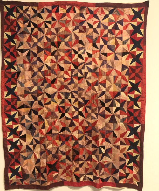 First, this is what I think of as “everyday art”—art that people create and use as a part of their lives. These quilts were made from materials that people had on hand—mainly, scraps of fabric from their family’s clothing—and the finished artwork wasn’t to be framed or hung on a wall; it was given to loved ones; it went on their beds; it kept them warm at night.